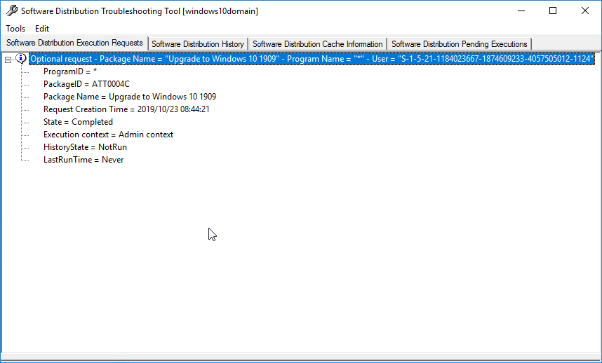 # Connect to namespace ROOT\ccm\SoftMgmtAgent and find the instances in CCM_TSExecutionRequest that have issues.