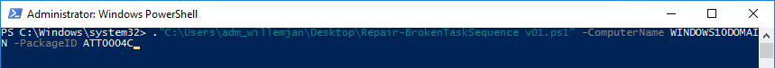 ."\Repair-BrokenTaskSequence v03.ps1" -ComputerNames WINDOWS10DOMAIN1 -PackageID ATT0002C