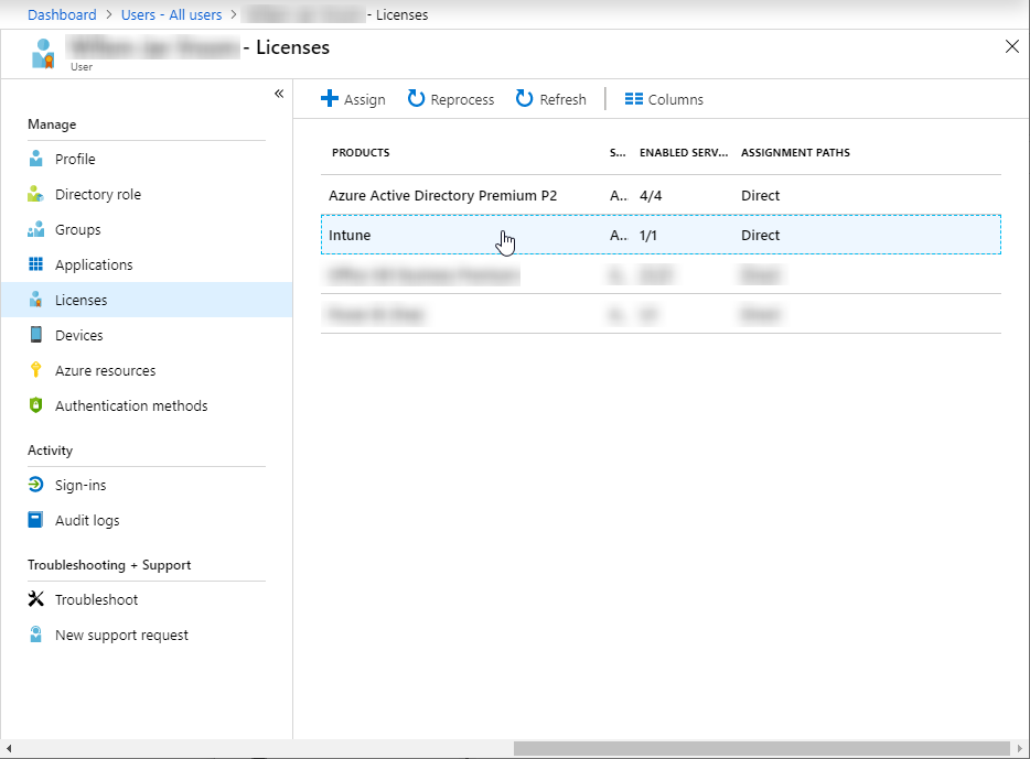 Check that the user has at least an intune licenses. | ![]() |