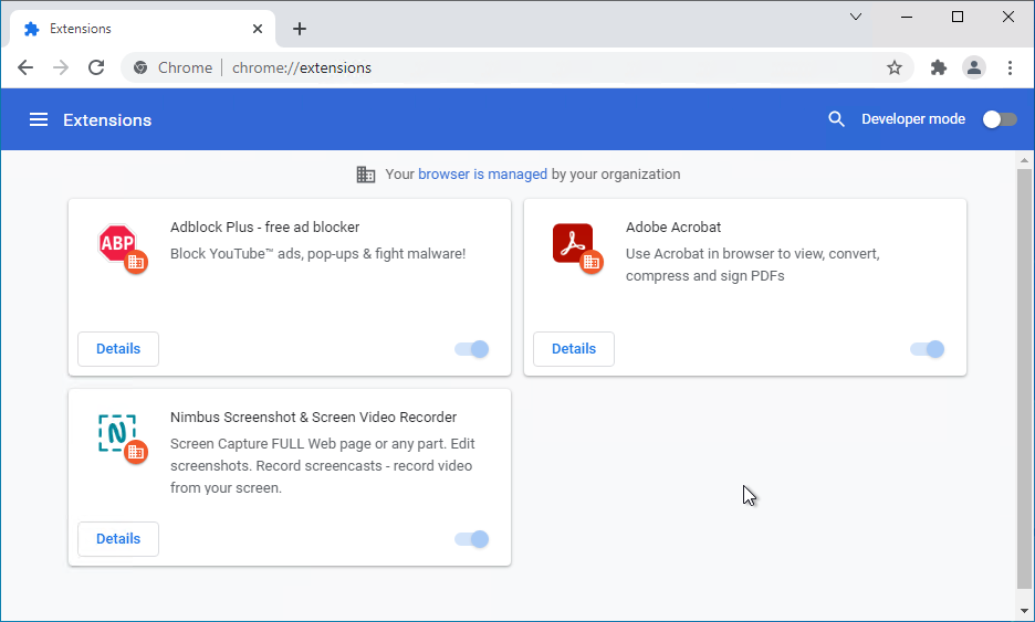 - All extensions are blocked, except the ones that are explicitly allowed: