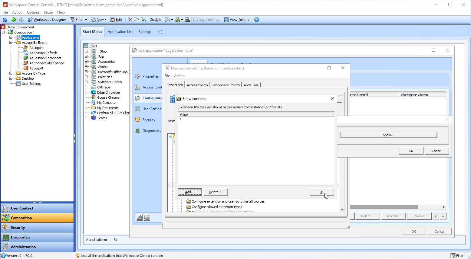 Configure Edge Chromium Extensions via Ivanti Workspace Control