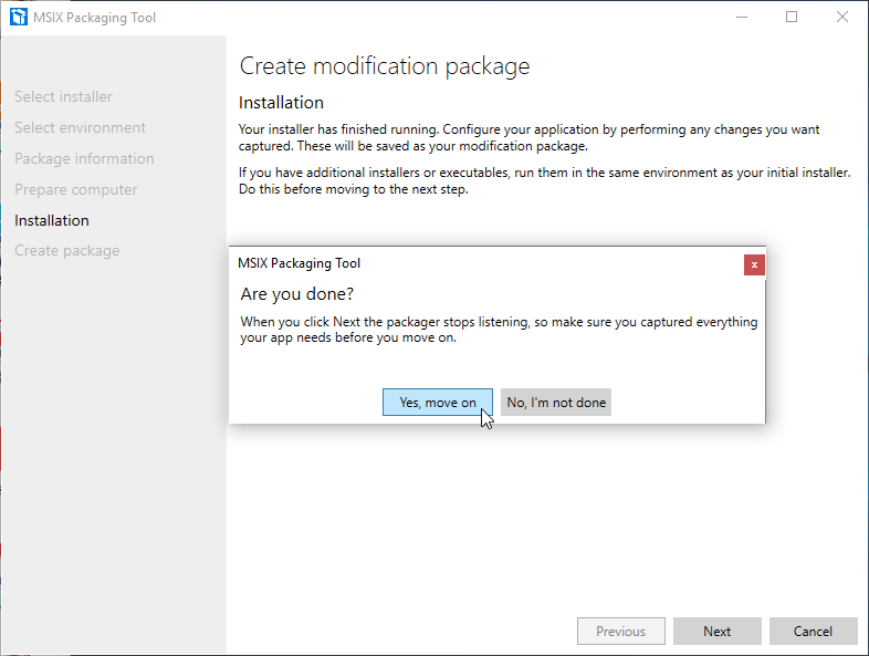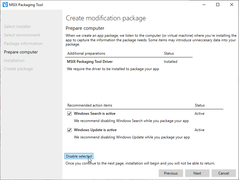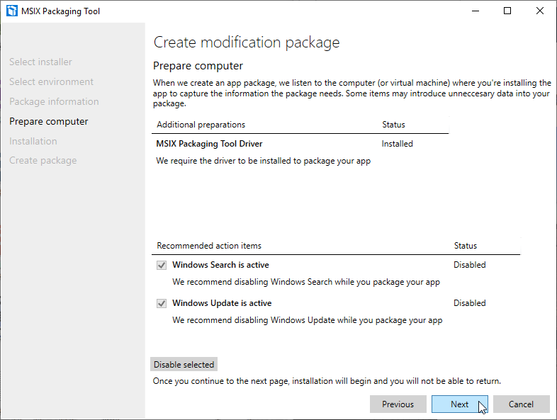 Start the MSIX packaging tool and select modification package. | ![]() |