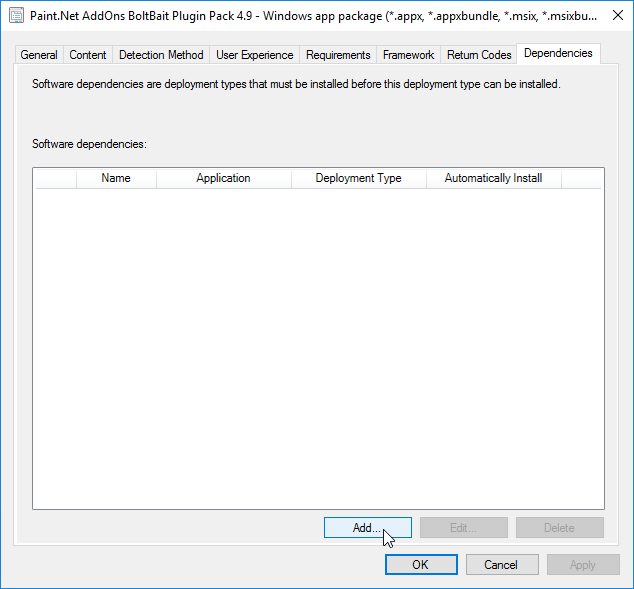 Before the Paint.Net Addin package can be deployed, it is mandatory to have the dependency application deployed first.