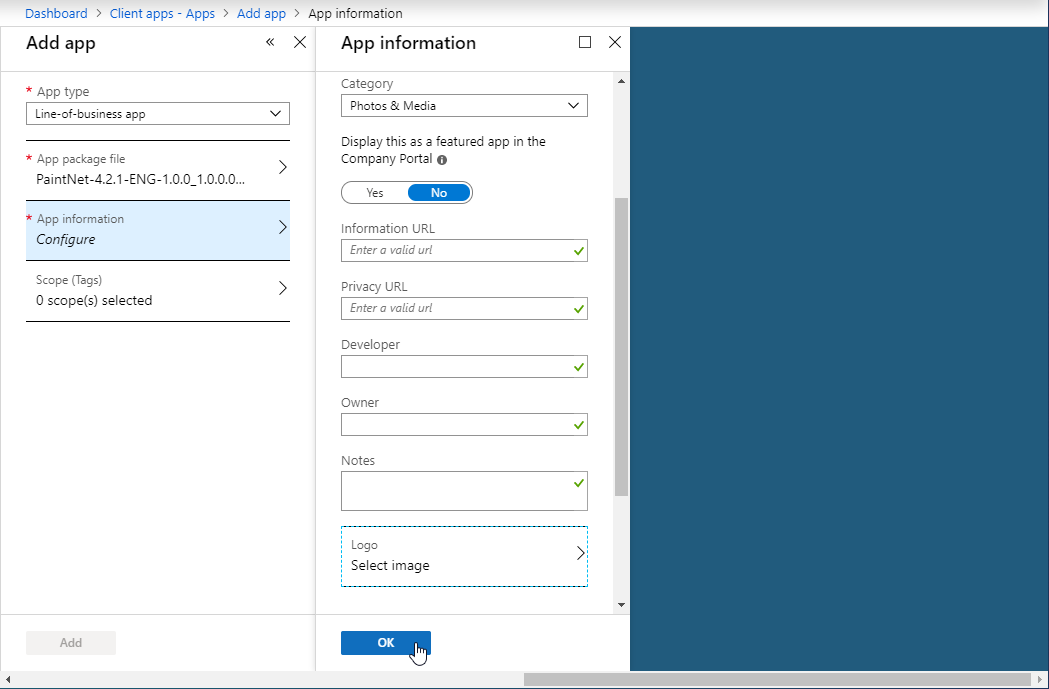 Select an icon for the application. I used 7ZIP to open the .msix file and extract the icon file from the 'Assets' folder. |