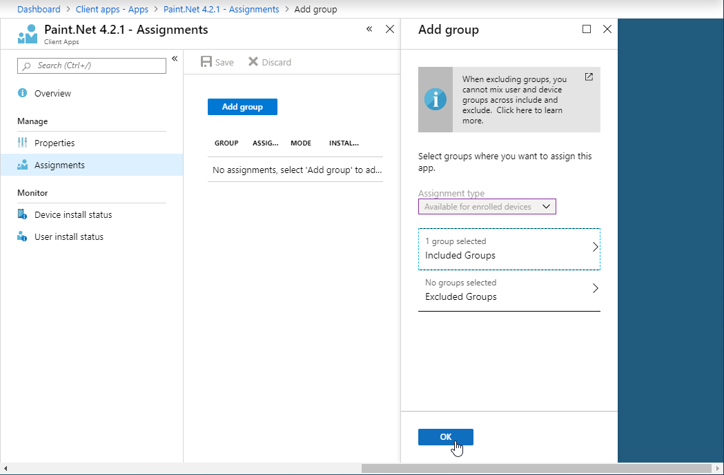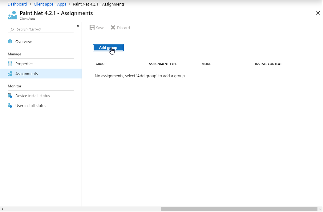 After waiting a while you can add groups to the new application. Click [Assignments]. |