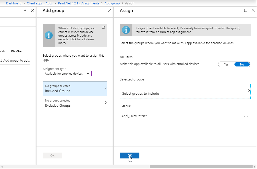 Select [Available for enrolled devices] from the pulldown menu. | ![]() |
