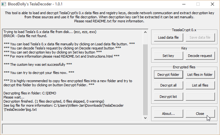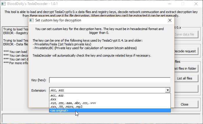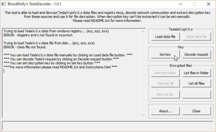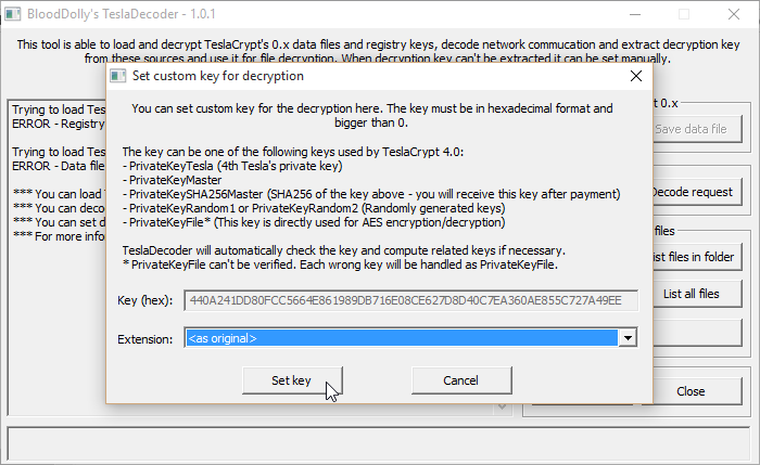 Start TeslaDecoder.exe and click on [Set Key]: | ![]() |