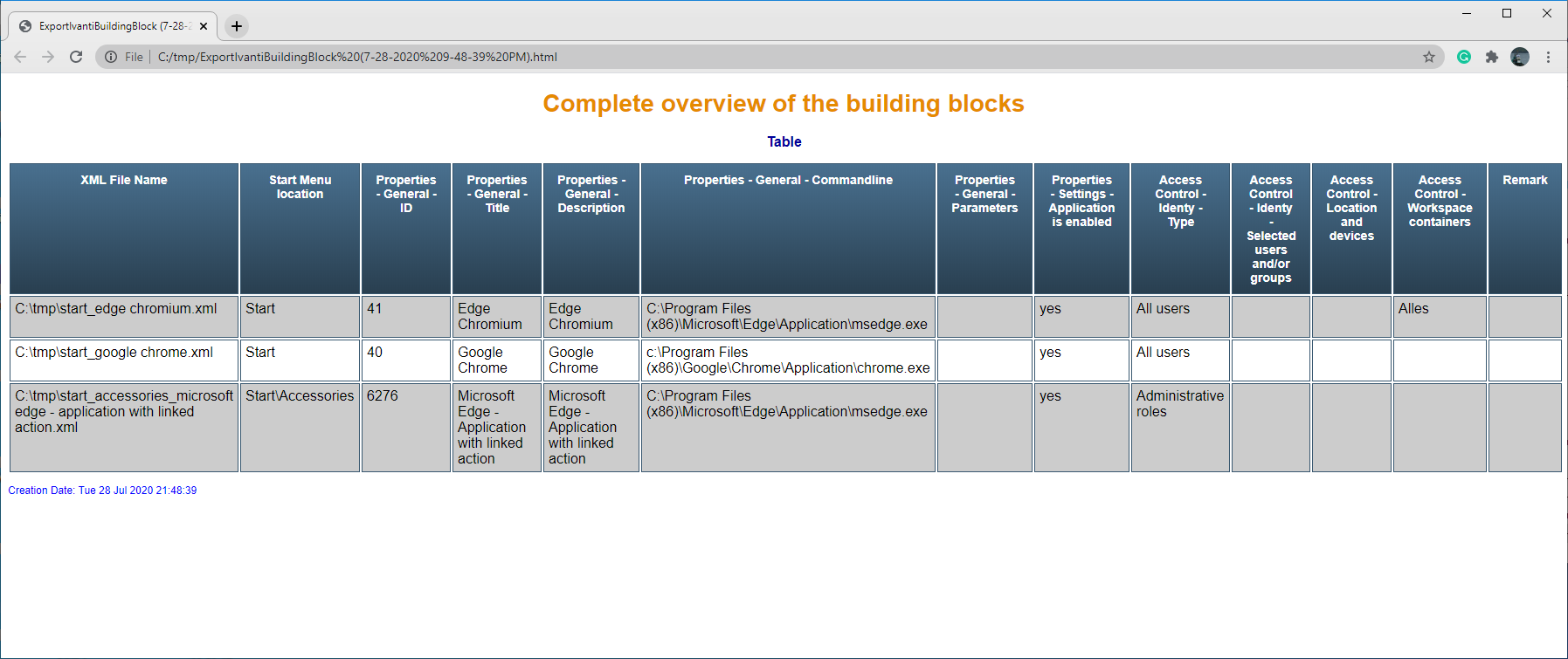 In some cases, it might be useful to have the Ivanti Workspace Control application building block data exported to a CSV file. Useful for further analysis, and checking for consistency. I wrote a PowerShell script to do that job for me.