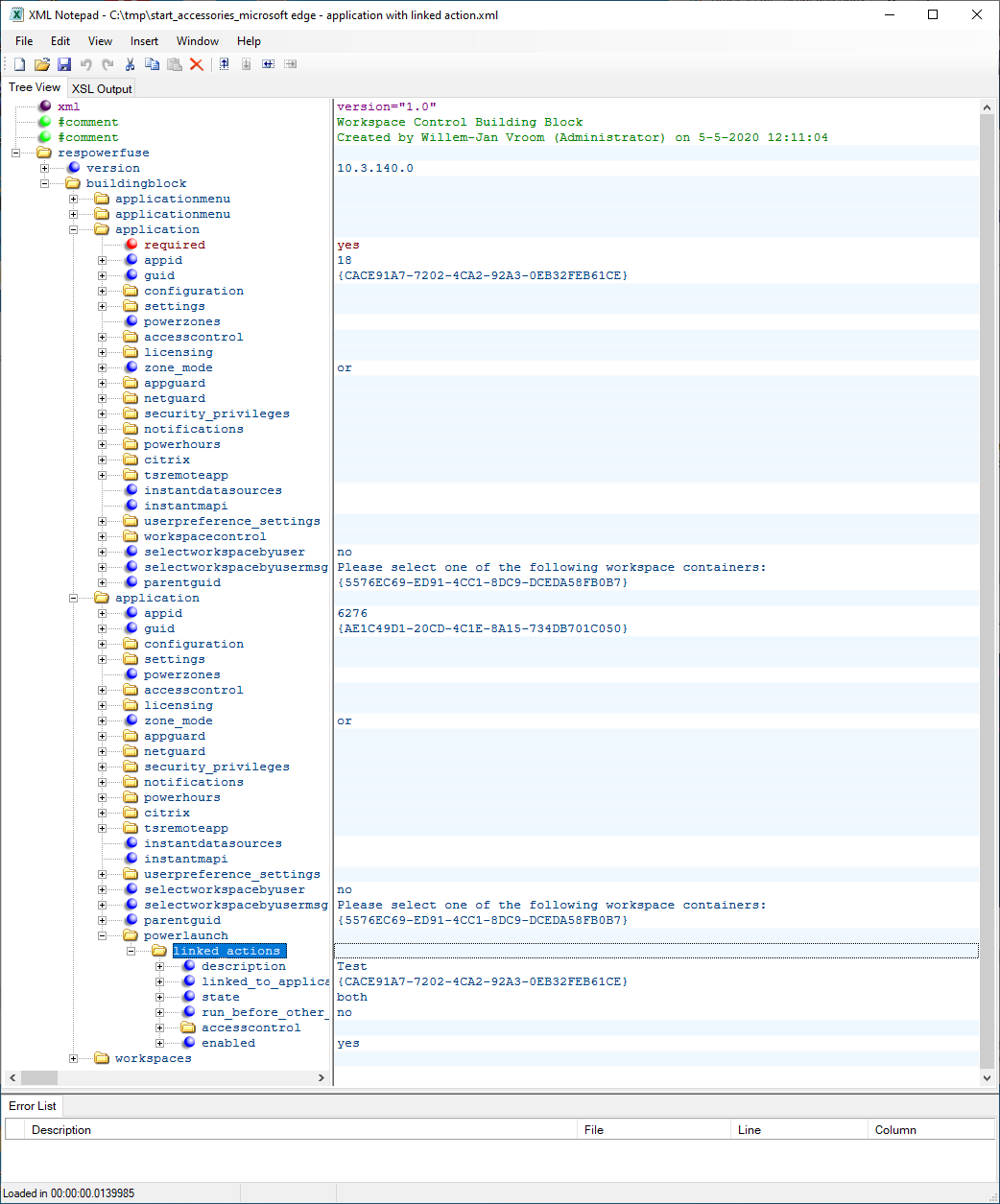 New in v0.5 is the extension of the parameter LookFor with Locations and Containers. Also, the function Get-XMLDetailsForWorkspaces has been updated to support multiple applications in one building block with no linked applications.